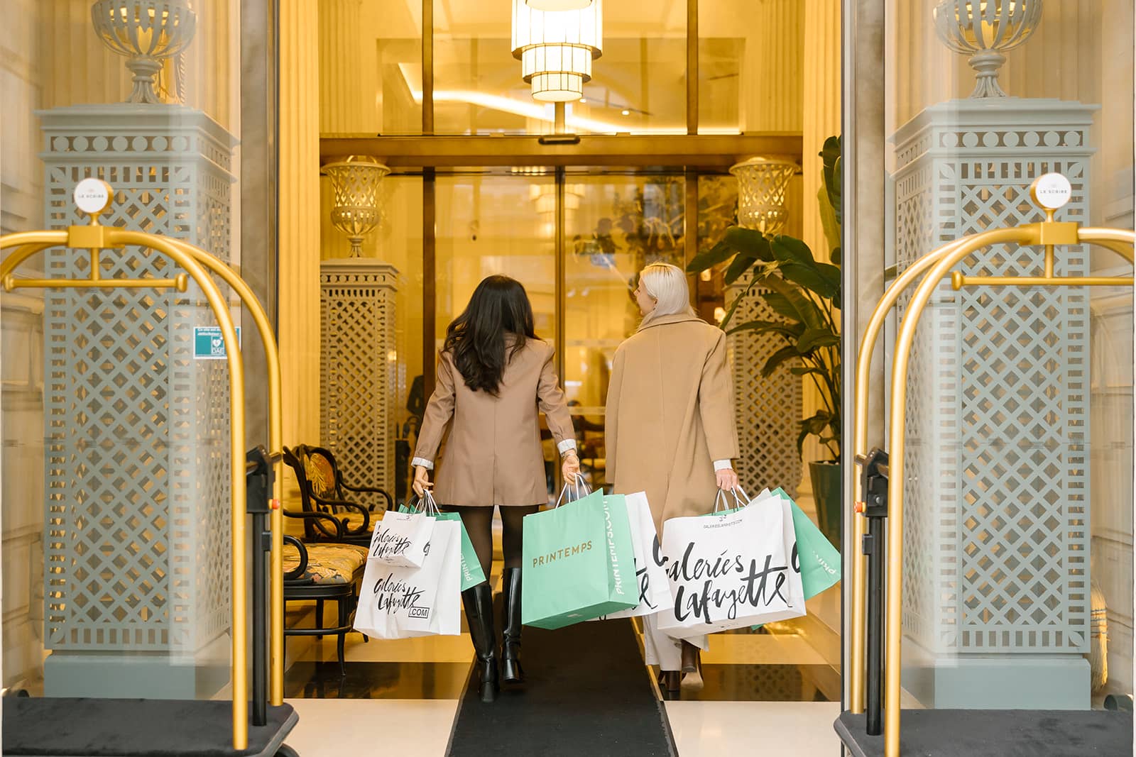 À l’intérieur, les étages se succèdent entre boutiques de luxe, marques internationales et espaces dédiés aux créateurs émergents. Depuis les terrasses, profitez d’une vue exceptionnelle sur Paris, avec l’Opéra Garnier au premier plan et, au loin, la Tour Montparnasse et le Sacré-Cœur.